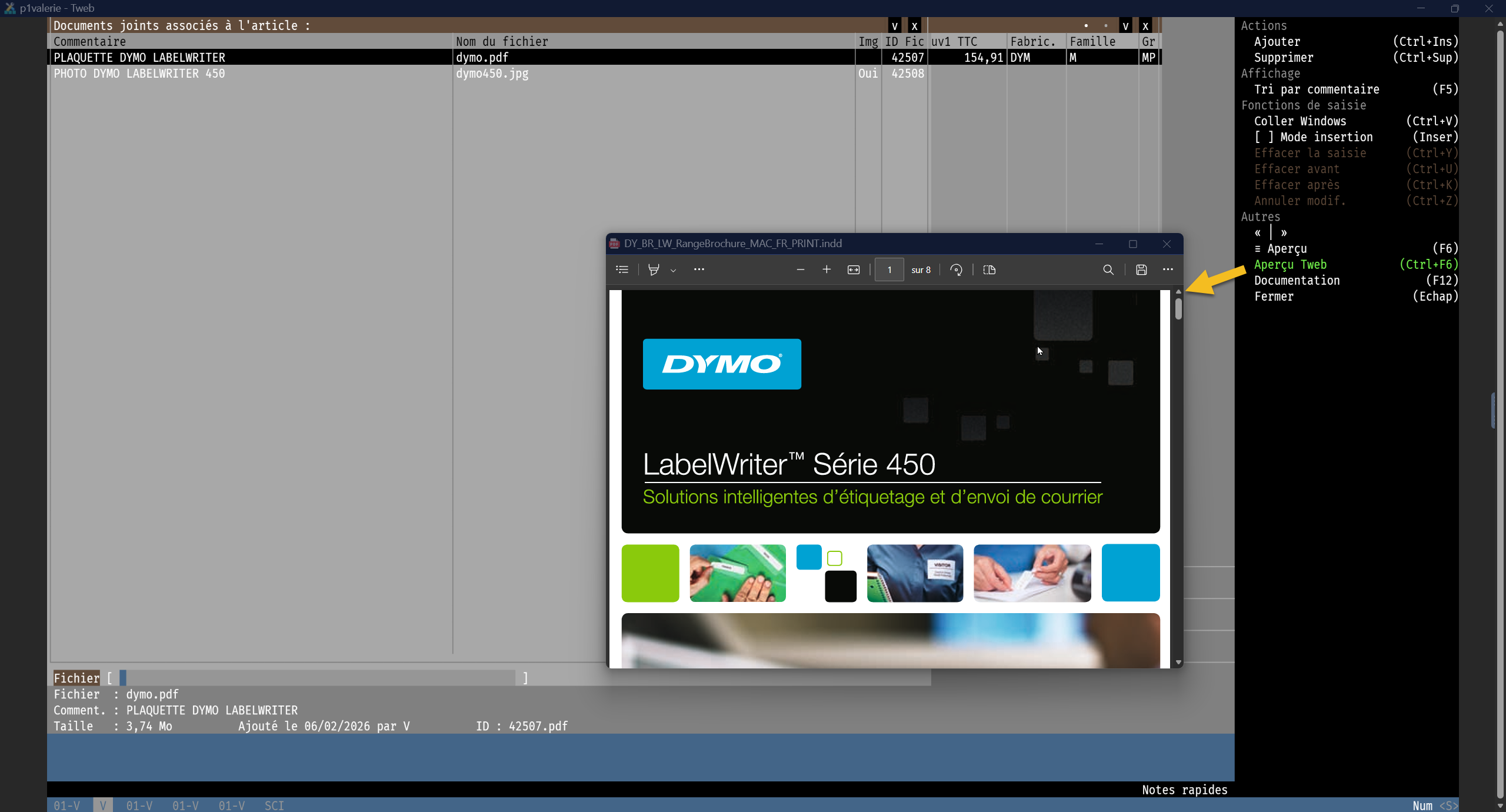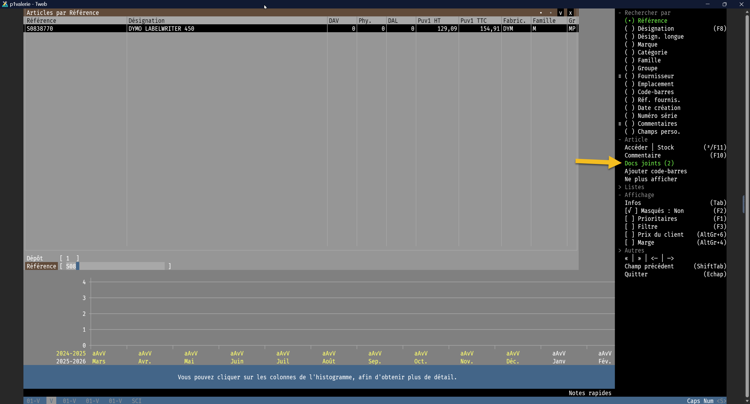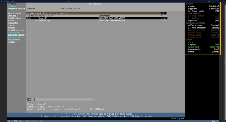 Les documents joints ajoutés depuis la fenêtre Documents joints d’une fiche article, sont visibles depuis les documents commerciaux du Négoce et du S.A.V.
