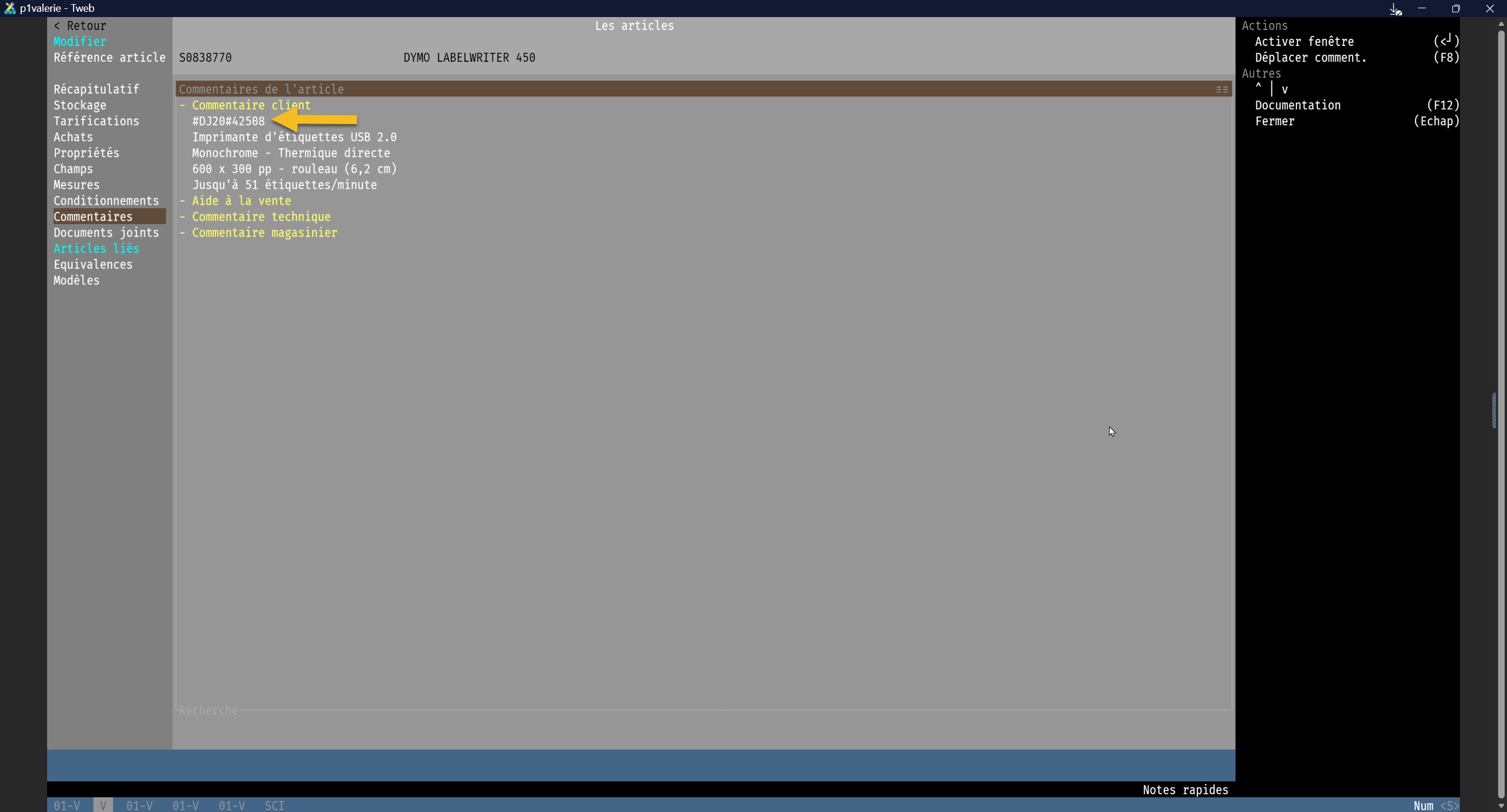 | P.J | Identifie le(s) document(s) ou image(s) associé(s) comme pièces jointes aux documents commerciaux. | OUI/NON |