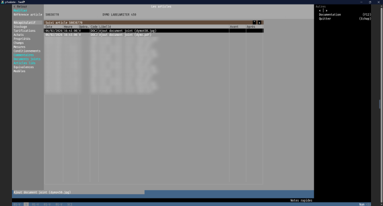 - Le suivi de l'article prend en compte l'ajout et la suppression de documents joints.