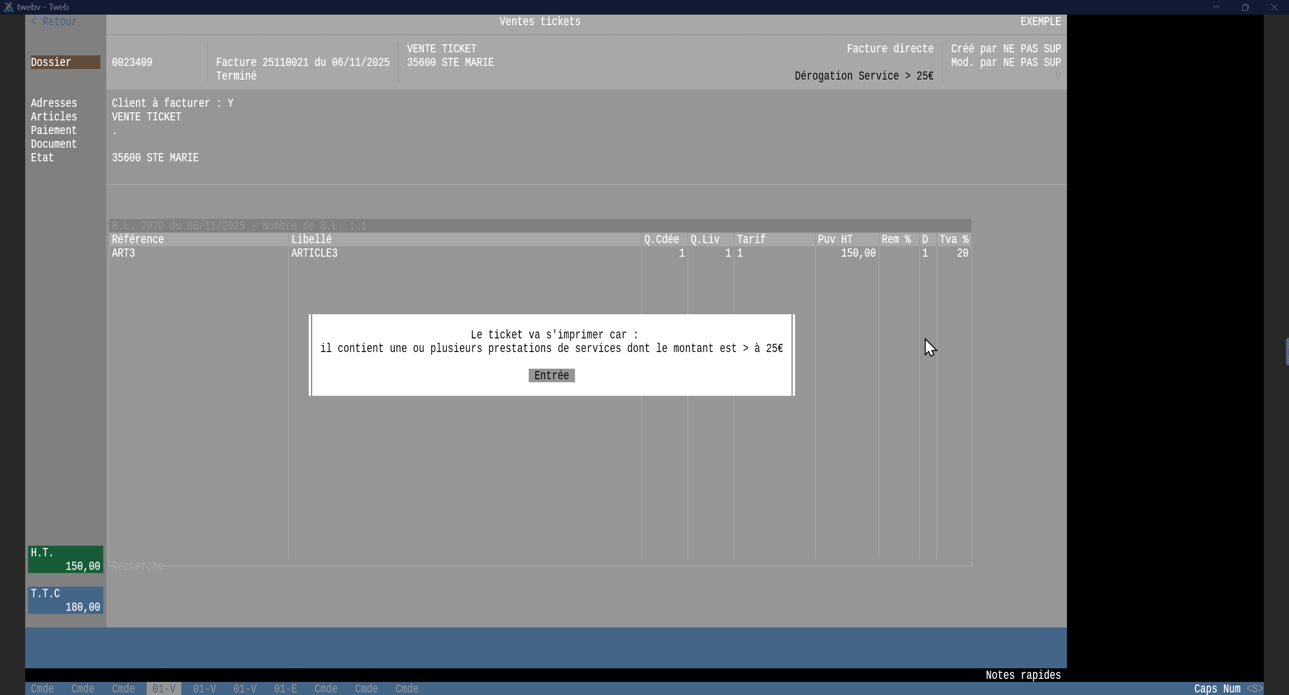 Lorsqu’un ticket répond à l’une des deux dérogations ou les deux, le ticket est imprimé automatiquement :