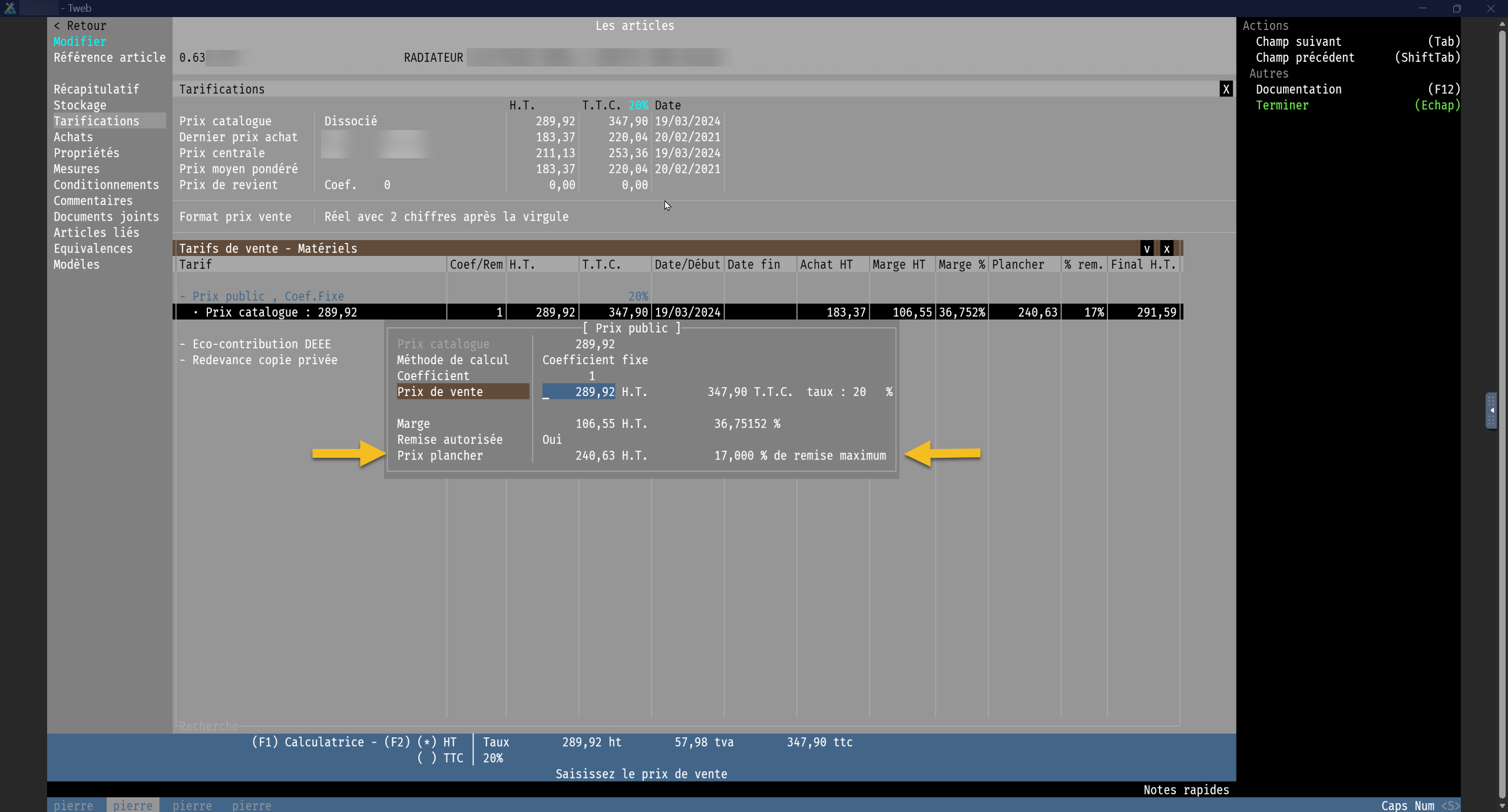 - Détermine la tarification de vente des articles : pièces ou matériel