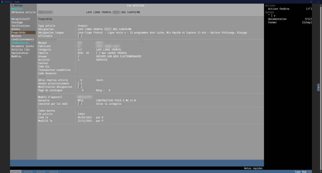 Certaines rubriques peuvent être affichées ou masquées selon votre activité commerciale (encastrable, livrable, pose nécessaire…).