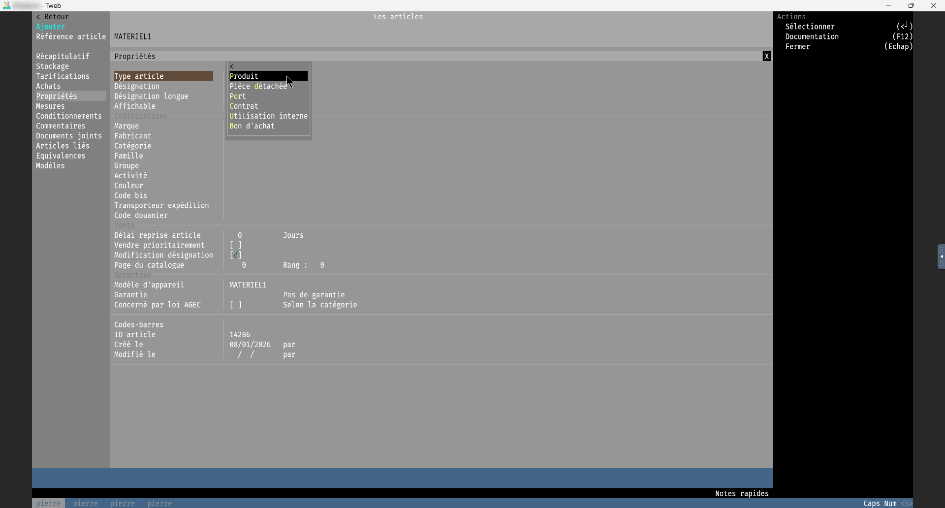 Cette fenêtre regroupe les informations essentielles d’identification de l’article.