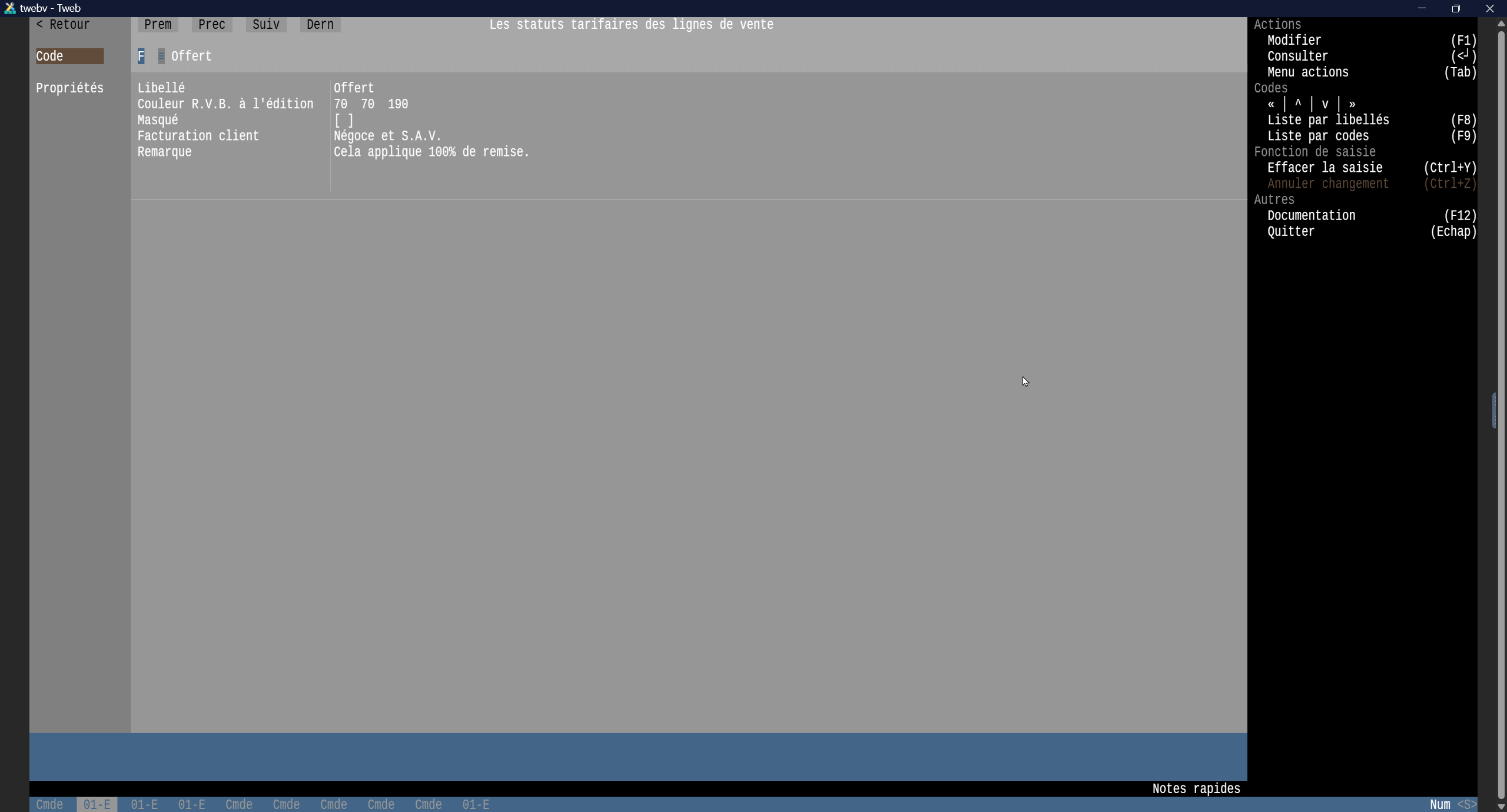 | Q | Prix par quantité | - | Le prix s'applique en fonction de la quantité. La ligne de vente peut cumuler deux statuts :