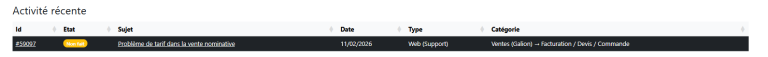 Et éventuellement une liste « Activité récente » Avec les demandes créées récemment.